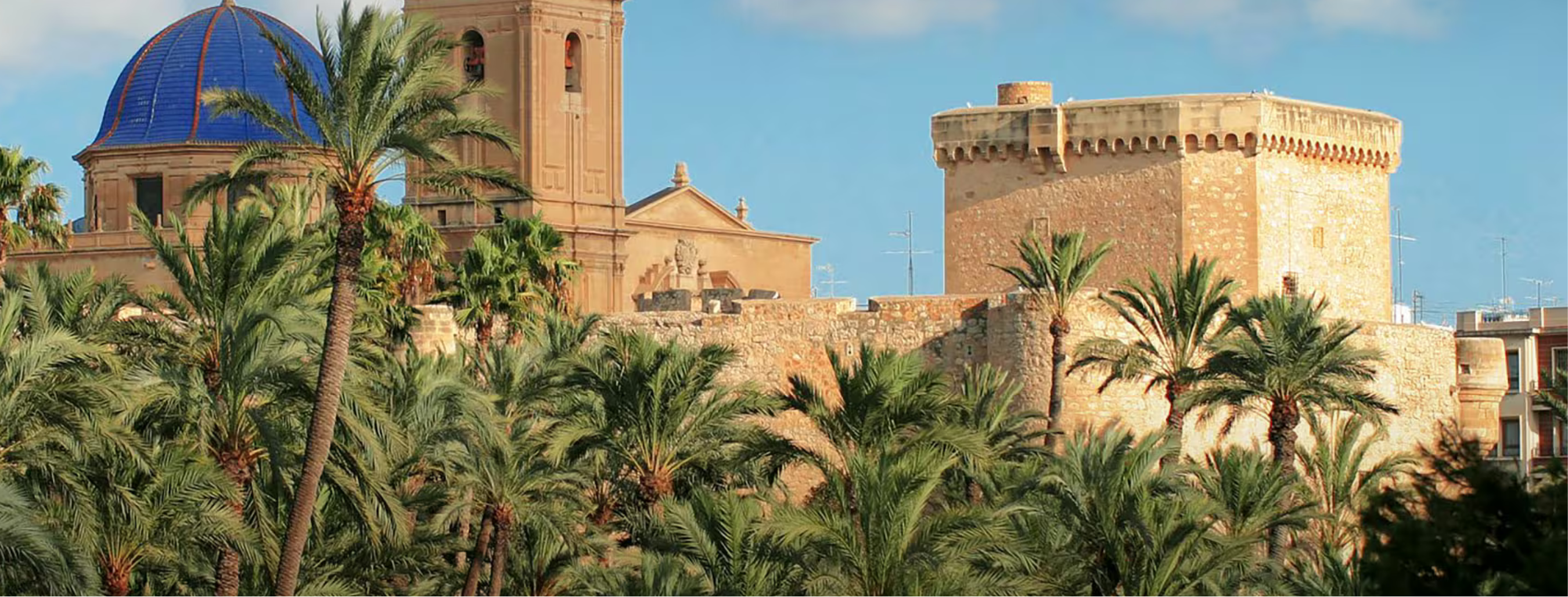La ciudad de Elche, situada en provincia de Alicante y bañada por la costa mediterránea cuenta con una sólida infraestructura turística y una amplia oferta cultural. Es reconocida por su excelente cocina mediterránea, centrada en arroces, pescados y productos frescos de la huerta, y respaldada por chefs de renombre internacional. Además, esta excelentemente comunicada por transporte público, la Autovía del Mediterráneo y el aeropuerto internacional.